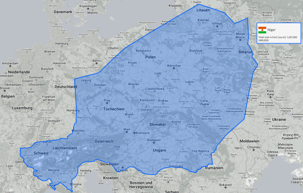 Niger liegt im Westen Afrikas in der sogenannten Sahel-Zone südlich der Sahara-Wüste. Es zählt zu den ärmsten Länder der Welt und ist immer wieder von Dürren und Hungersnöten betroffen, während es gleichzeitig die am schnellsten wachsende Bevölkerung der Welt hat (durchschnittlich 7 Kinder pro Frau).