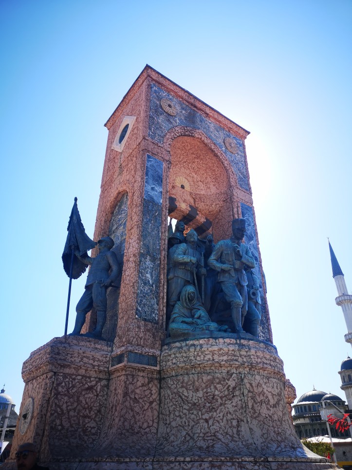 Das Denkmal der Republik (auf Türkisch Cumhuriyet Anıtı) am Taksim-Platz, entworfen vom Italiener Pietro Canonica, erinnert an die Ausrufung der Republik und zeigt unter anderem Atatürk und seinen Ministerpräsidenten und Nachfolger İsmet İnönü.